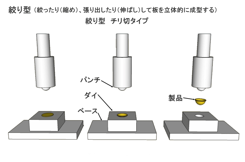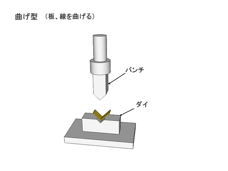 プレス金型は上下一対のパンチ(凸形状)とダイ(凹形状)が基本的な構造です。